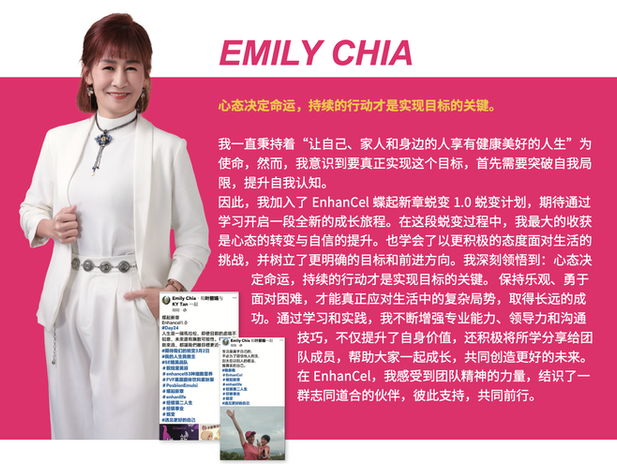 成功出口至中国、印尼、新加坡等亚洲市场。2023 年,EnhanCel 正式登陆马来西亚,携手本地经销商,将国际知名的营养产品与事业机会带给大众。